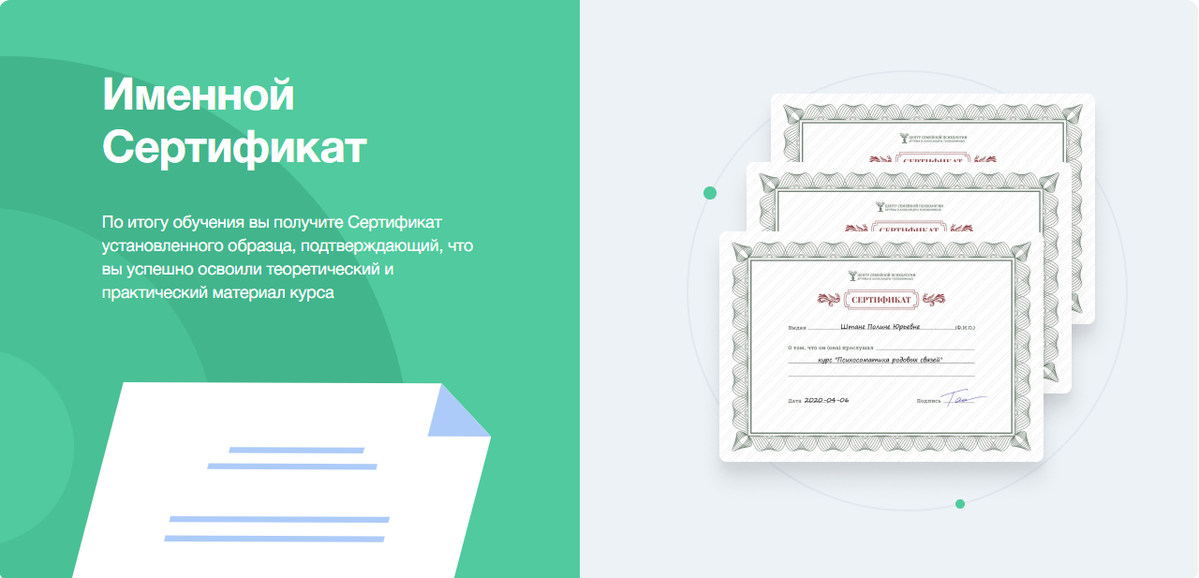 Сертификат об окончании дает возможность поступить на 2-й и 3-й уровни Программы по изучению современной психосоматики